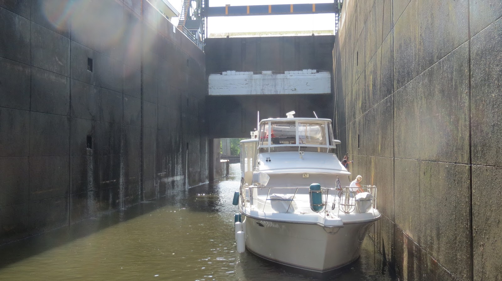 We woke up on Sunday and expected to travel 40 miles and 4 locks to Sylvan Beach, which is on the East side of Lake Oneida. The first two locks took us up, but the last two locks went down so we had a little of each. After we left the last lock we decided to cross Lake Oneida and go to Brewerton because it was still pretty early. The lake was a little choppy and it was Sunday so there was a lot of boat traffic from the locals on both sides of the lake. We docked around 3:30 and had happy hour early with some of the locals. We are at Ess-Kay Marina which in my opinion is fantastic. The docks are fine, they have a great ship's store and have a courtesy car. On Monday "Kismet" and we went to Wal-Mart and Wegman's grocery store to stock up. Later I got the dingy out and ran it around for a while. I had not used the dinghy or the motor since Florida, but it started right up and ran great. I also got the Hooka (thanks again Bill) out and dove under the boat to look around. It was a little dark but the water was not that cold. We stayed at Ess-Kay another day while Beth and Dean on "Kismet" drove to Buffalo to get their bird's passport stamped before going into Canada.